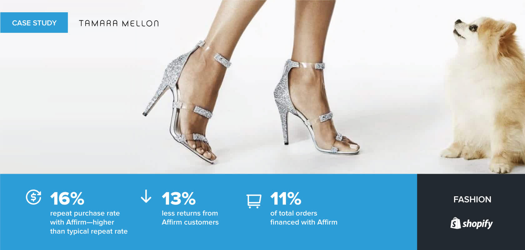 It didn’t take long for Tamara Mellon to notice the clear advantages Affirm was bringing their business. Customers can more easily afford to pair their pumps purchase with the boots they’d been eyeing— resulting in a large AOV lift for Tamara Mellon.